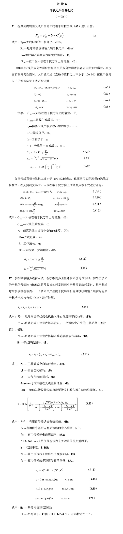 4.3.1 落入同步衛(wèi)星通信系統(tǒng)地球站接收機(jī)輸入端的干擾信號峰值電平應(yīng)比正常接收信號電平低30dB。